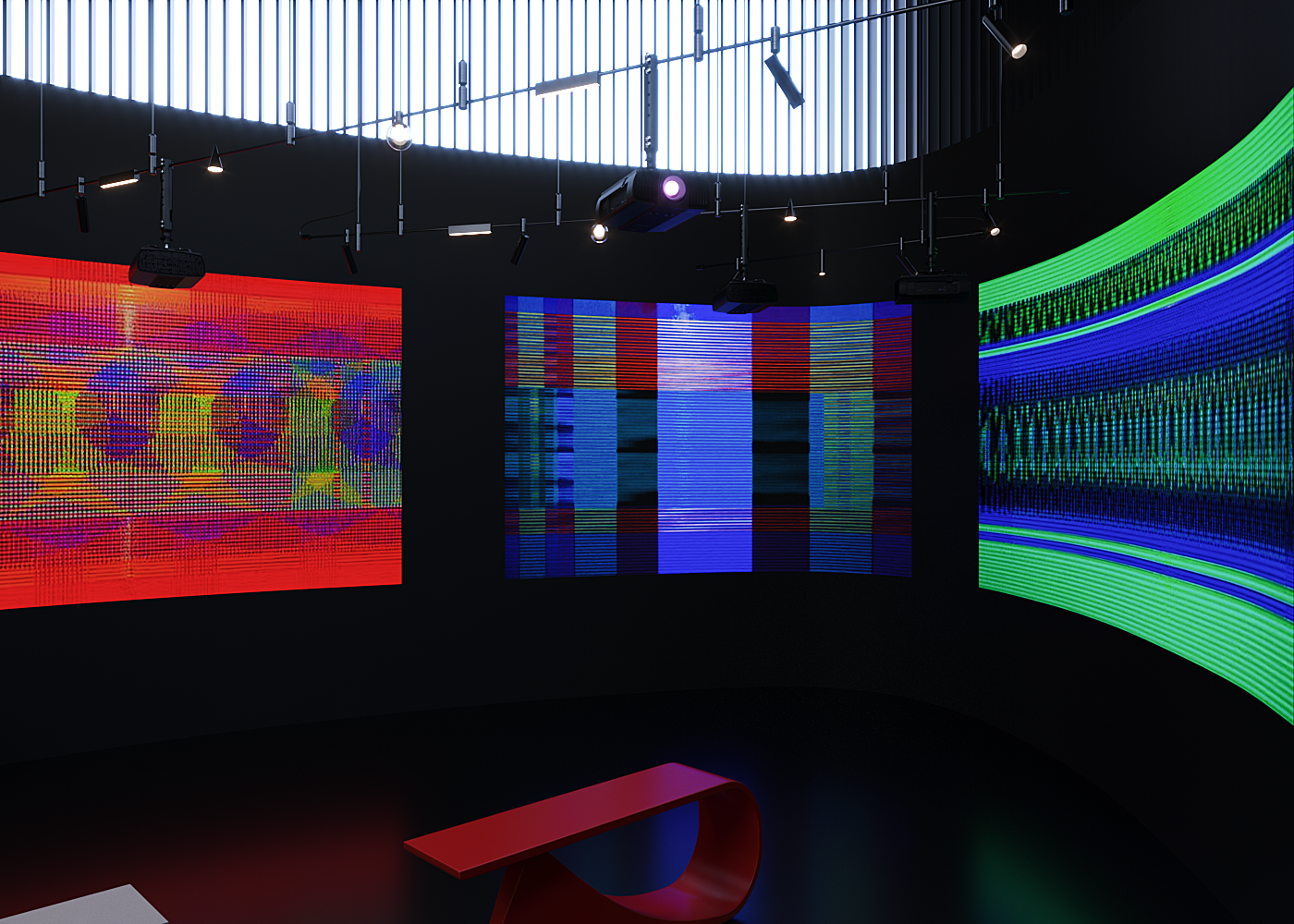 Alkyd on aluminium, custom software, computer, digital projection, 43’’ x 93’’ (109 cm x 236 cm), 2021
